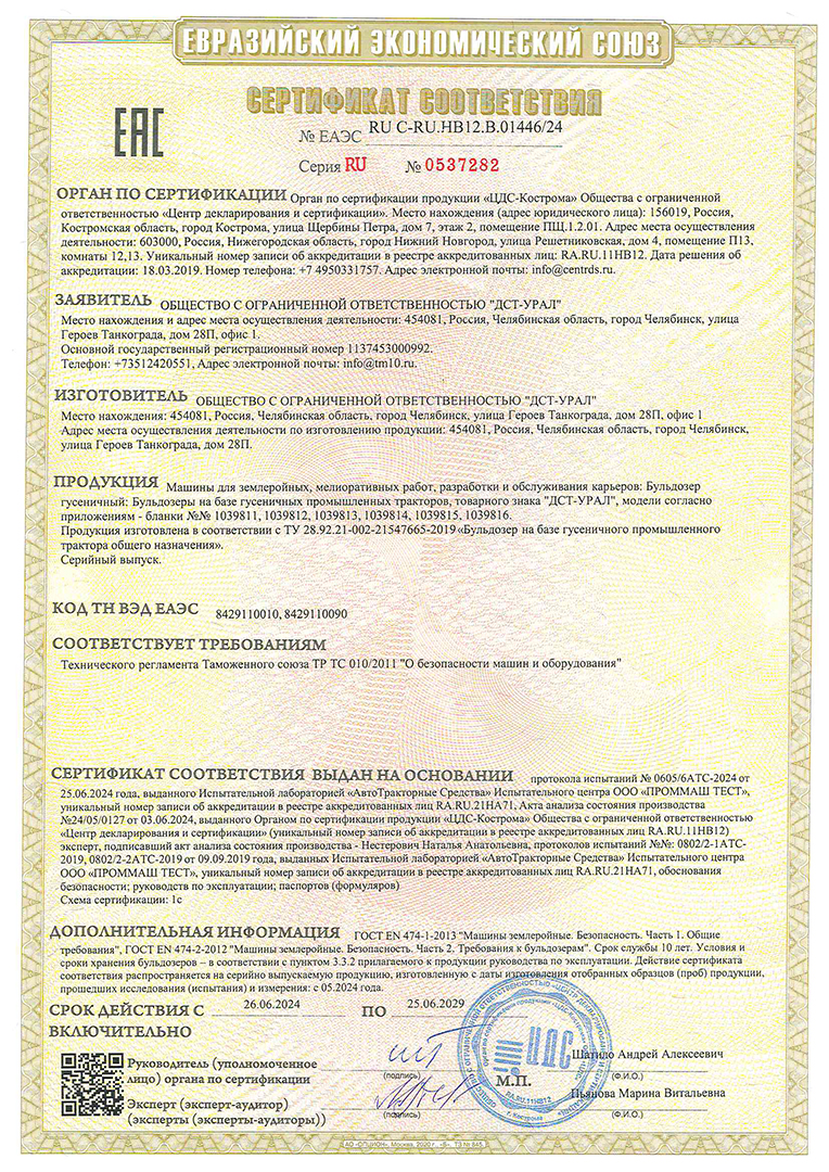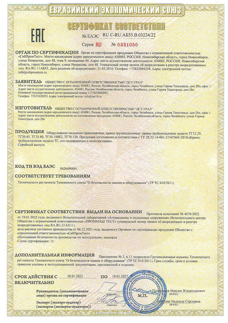 Сертификат Трубоукладчики ТГ