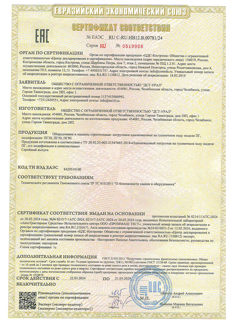 Сертификат Погрузчик ПГ20
