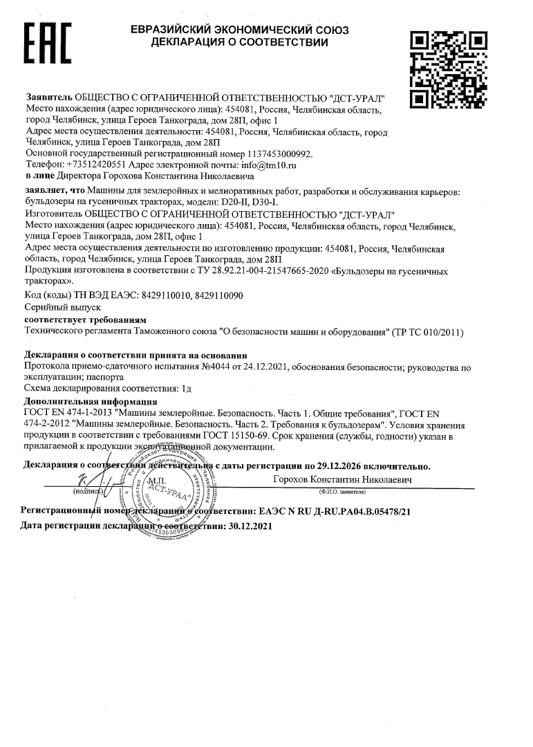 Декларация Бульдозеры D20-II, D30-I
