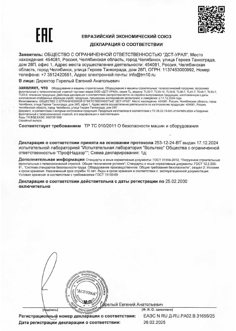 Декларация Телескопический погрузчик TL