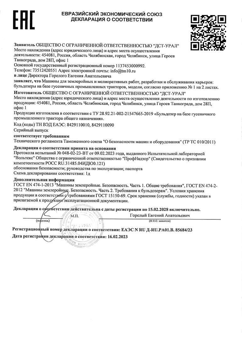 Декларация Бульдозеры D9-II, D9-III, D14-I
