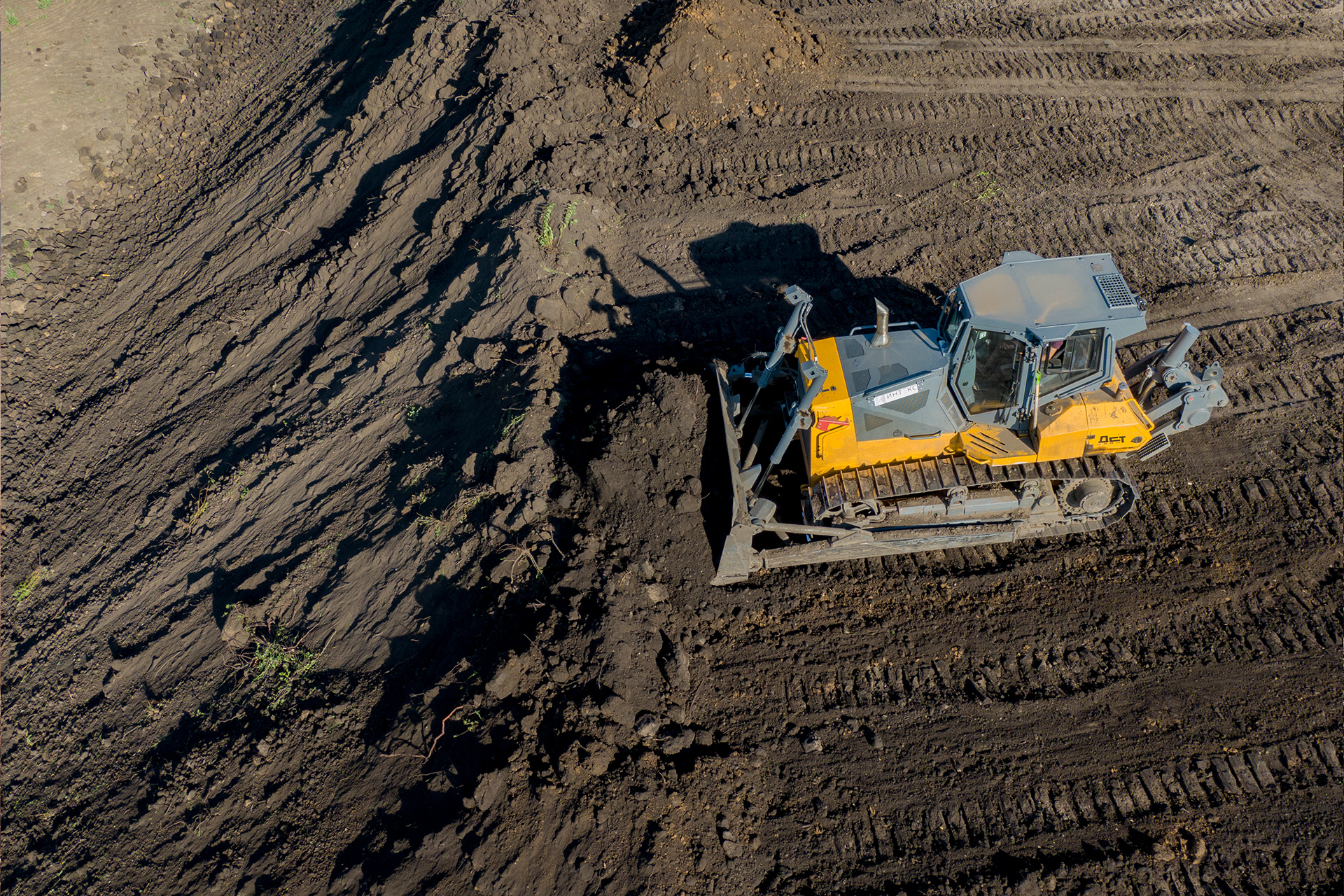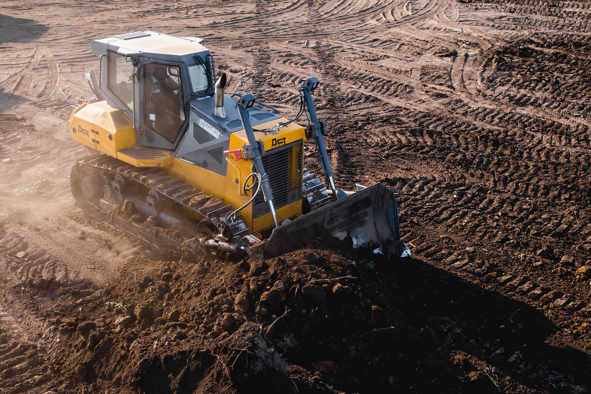 Мощная и маневренная гусеничная машина с усиленной конструкцией для эффективного выполнения широкого спектра землеройных, планировочных и других работ в различных условиях